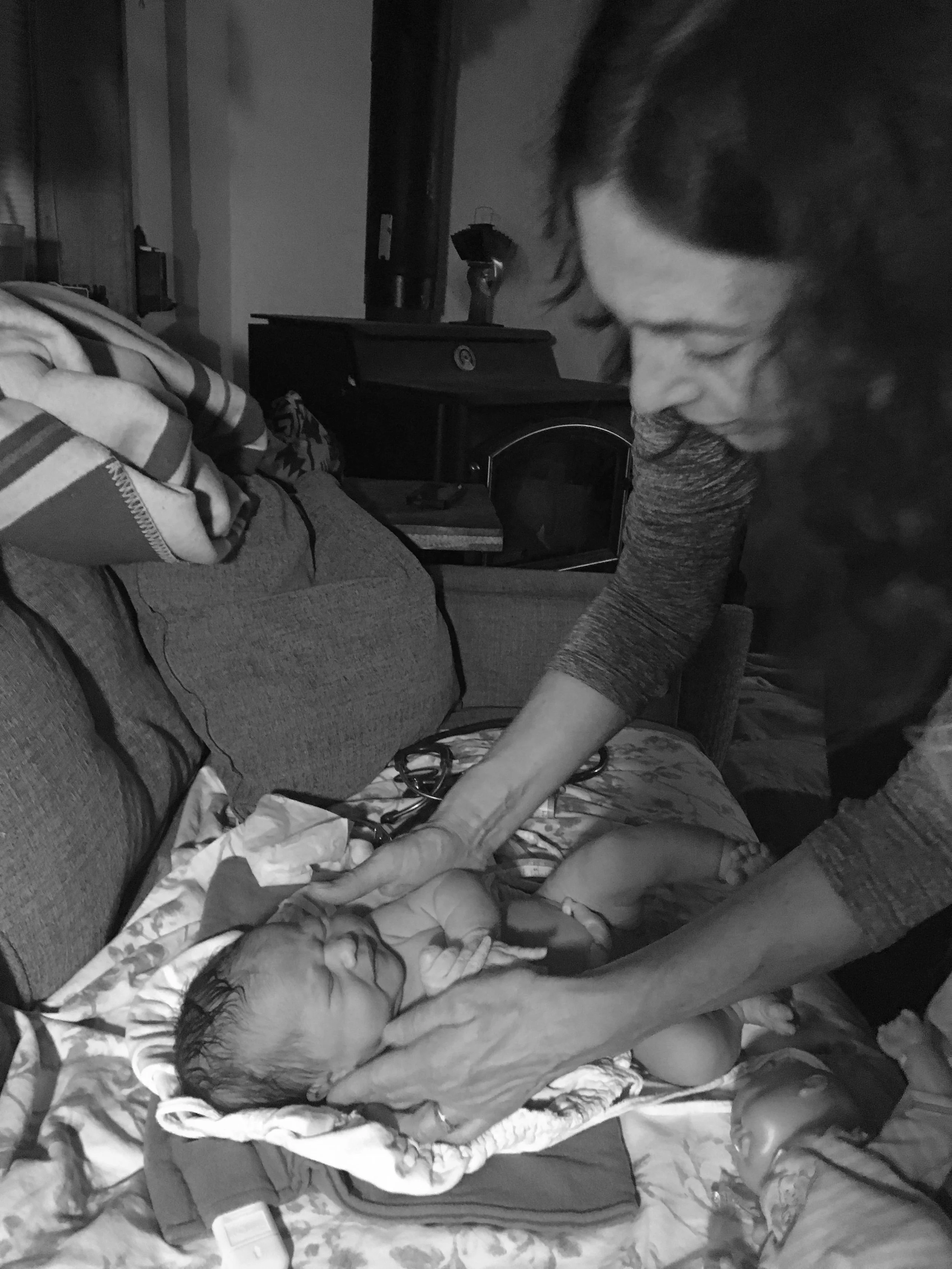 "Lynda was essential to us for both of our births, and in very different ways. She helped me navigate a very long and frustrating early labor, preventing me from getting scared or doubting myself. She was also physically capable of being hands on for a marathon first birth and instrumental in its success. For our second birth she had the knowledge and observational skills to see that I was much further along than I realized and make sure we were all set up for the baby to arrive. She is calm, kind and strong, with a deep understanding of birth. Lynda was very present without taking up any emotional oxygen. We feel very lucky that we were able to have her with us at our births."